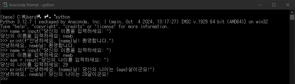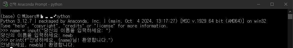 - 이름을 입력받고 출력하는 프로그램 작성.