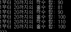 짝수 합, 홀수 합이 잘 나왔다.