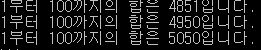 - 1부터 100까지 합을 계산하는 프로그램 작성.