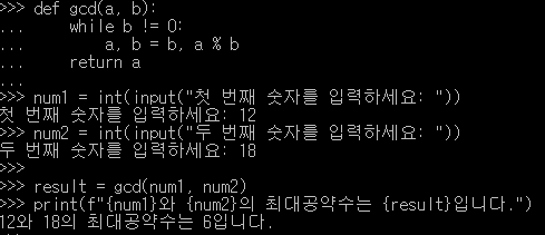 - 두 숫자의 최대공약수를 구하는 함수 작성.