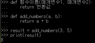 - return 키워드를 사용해 함수의 결과를 반환할 수 있음