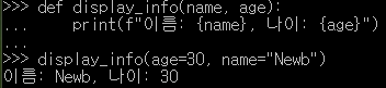 함수를 호출할 때 매개변수 이름을 직접 지정하여 값을 전달하는 방식.