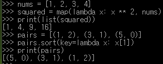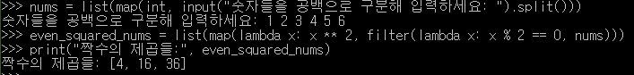 - 람다 함수를 사용해 리스트의 모든 숫자를 제곱하는 프로그램 작성.