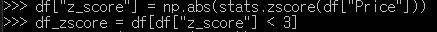 Z-score가 ±3 이상인 값을 이상치로 제거