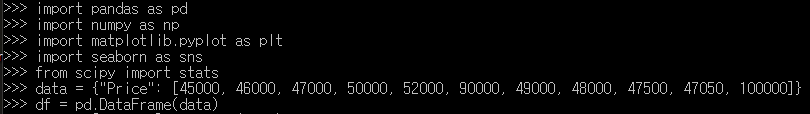 - IQR 범위를 벗어나는 데이터를 이상치로 간주